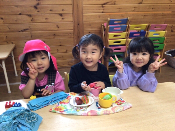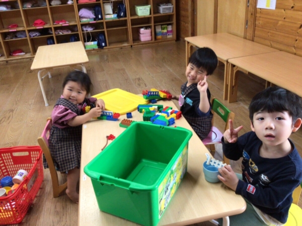 朝は涙のお友達もお部屋の中では落ち着き、おもちゃで遊んだり