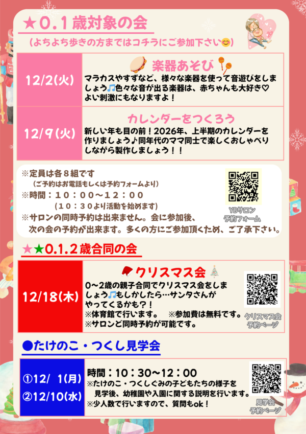【NEW】12月の未就園児イベントカレンダー😊※ネット予約も可能に★