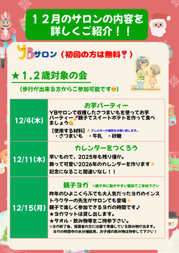 【NEW】12月の未就園児イベントカレンダー😊※ネット予約も可能に★