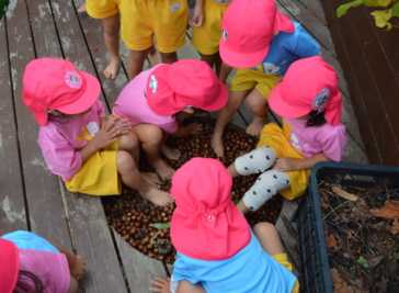 山と田んぼに囲まれた幼稚園は、草花やどんぐりなど自然の贈り物がいっぱい!